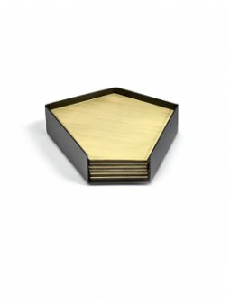 With the collection of Lost & Found trays by GRiNT for Serax, the inventive duo show that the shapes are literally there for the taking ... provided you actually look for them. From residual materials they have created a black tray, a bowl, and six gold-coloured glasses coasters, made of steel and brass, that fit like a puzzle and leave room for puzzlement. Lost & Found by GRiNT for Serax, found objects from materials that were presumed lost.